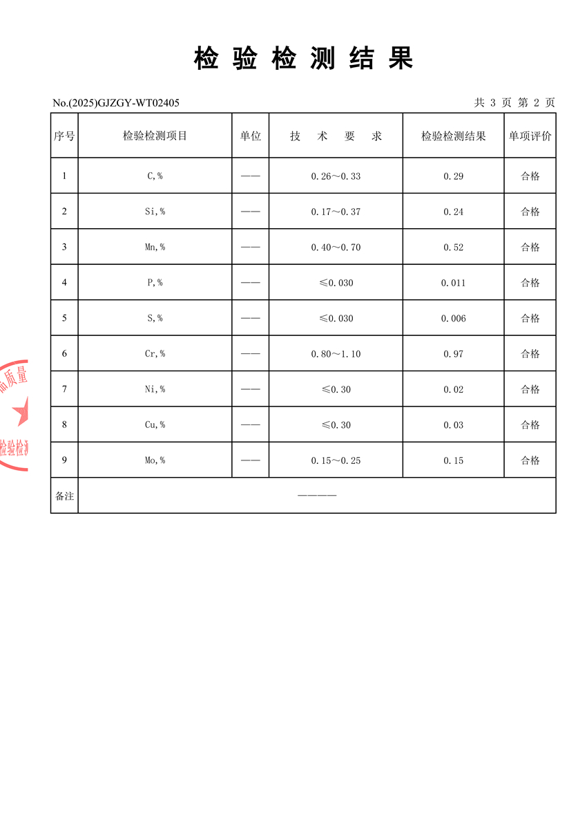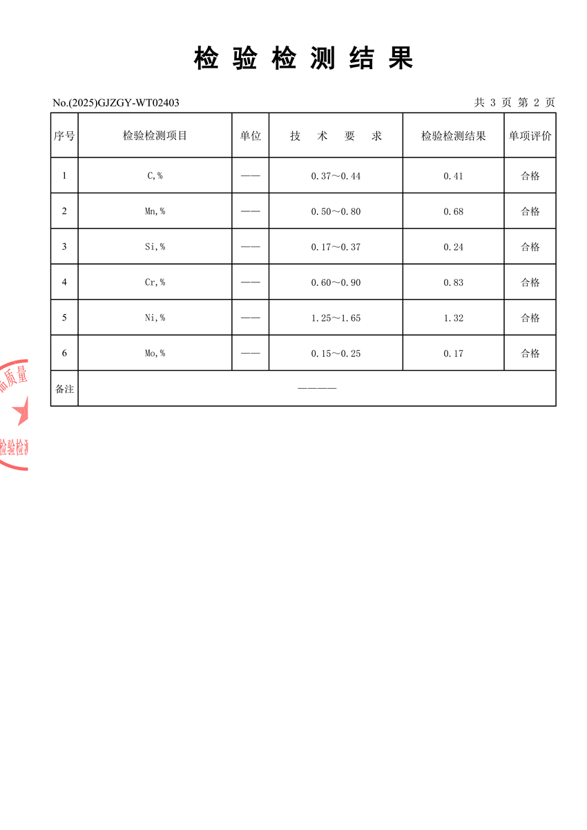 Inspection Result for Raw Material 40CrNiMoA