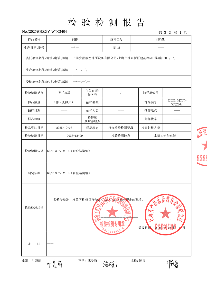 To keep Ifly GSE make every products as excellent quality, we know the raw material used is the basic,it is the first step to star long way business journey.so we will takes samples of the raw material that our supplier provide to us,send to professional appraisal organization who has got China Aviation Industry Material Testing Qualification Accreditation,all of these inspection has got CNAS mark, we will return these raw materials to supplier if they are not inspection pass.we are just choose who is good quality as our business partners.