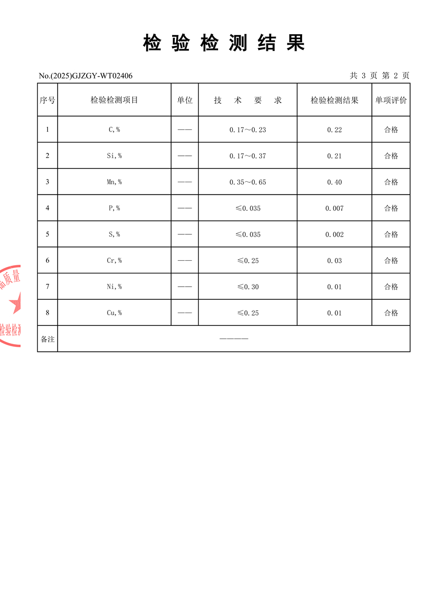 Inspection Result for Raw Material #20 Steel